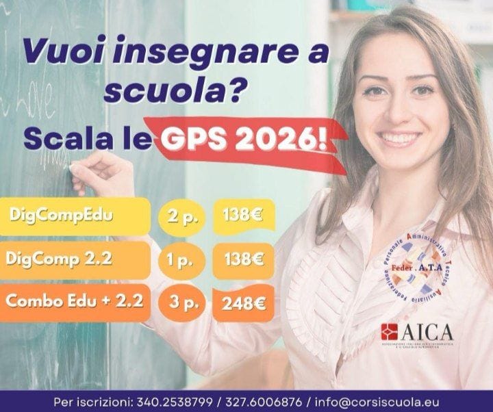 Nella convinzione che possa accompagnare i propri associati e tutti gli ATA in generale compresi i loro familiari, FederATA ha stipulato una convenzione con AICA per ottenere la DigComp 2.2 e la DigCompEdu valide per le gps 2026.